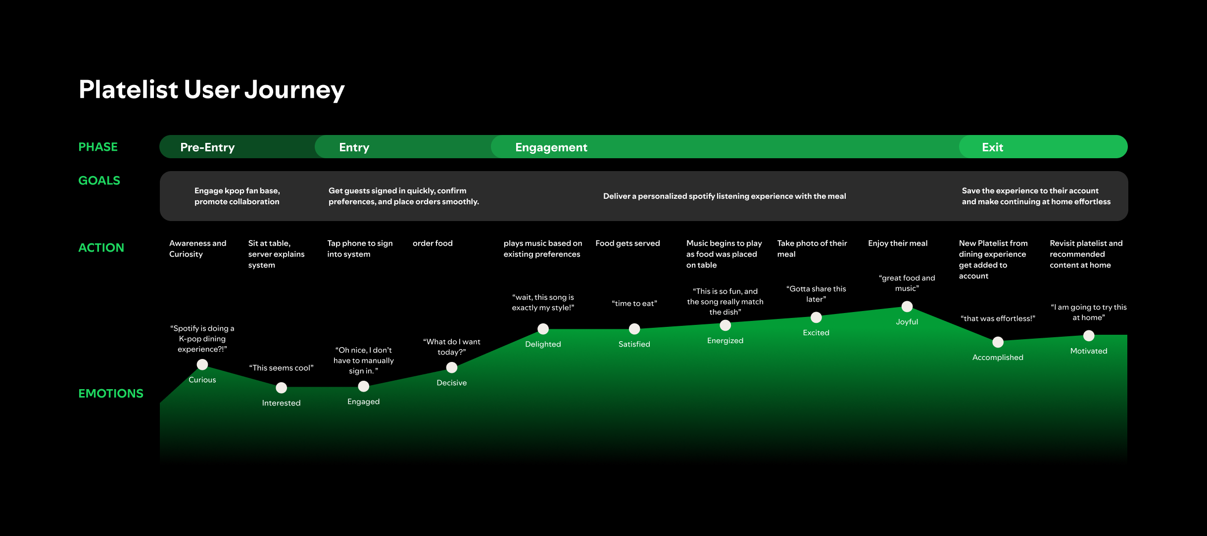 Spotify Platelist is a conceptual feature that reimagines music discovery as a more intentional and emotionally meaningful ritual. Instead of relying only on algorithm-driven playlists, it invites users to “plate” songs thoughtfully, curating tracks based on mood, context, and personal meaning. Designed to fit within Spotify’s ecosystem, Platelist encourages slower, more reflective listening by allowing users to arrange songs deliberately and add light context, such as emotions or memories tied to each track.