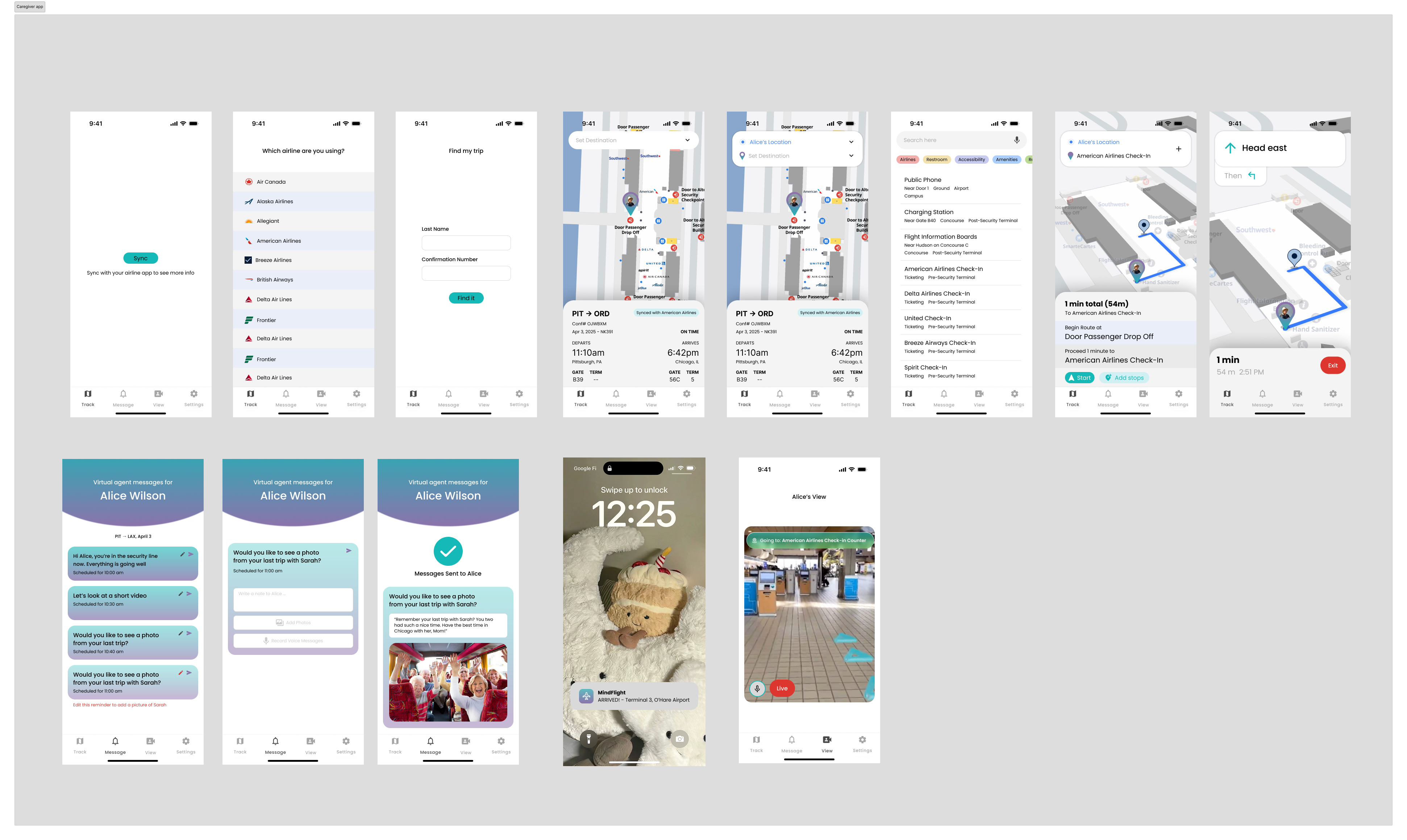 Designing for dementia pushed us to simplify, slow down, and think carefully about how information is presented. For example, we chose calming colors, a non-human companion, and minimal interface elements to avoid overstimulation. We also had to think beyond the traveler, considering caregivers, airport staff, and airlines as part of the ecosystem.